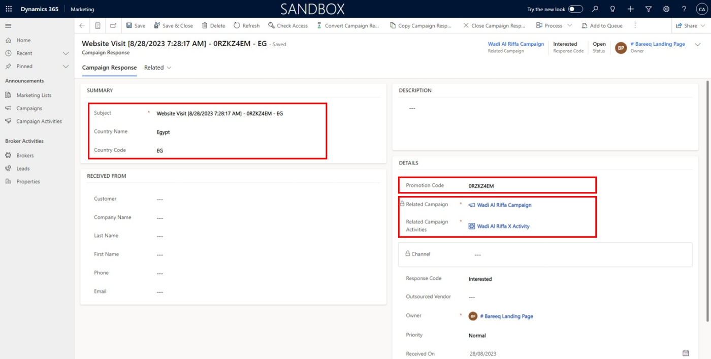 When a potential customer visits the landing page, even without entering any data, a response for the campaign is automatically generated. This response is integral to the campaign's performance tracking .