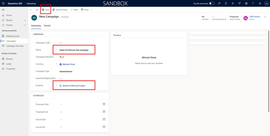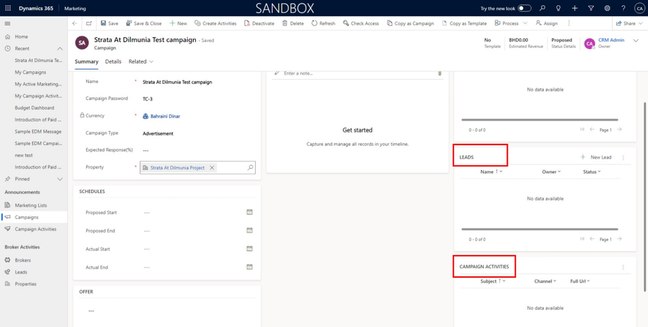 After saving the campaign form, Leads and campaign activities will be displayed.