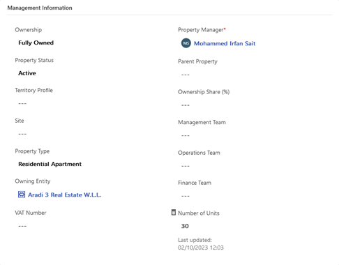 "Each property is detailed with comprehensive information. This includes specific property details such as its location and the team responsible for its management. Additionally, it encompasses financial data, which provides an insight into the management information and forecasting details."