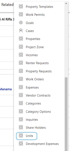 At this point, our focus is on the units. Therefore, within the 'Related Section', please select 'Units'.
