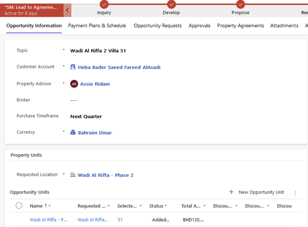 Once the Property Advisor selects the unit(s), all the unit(s) information would appear.
