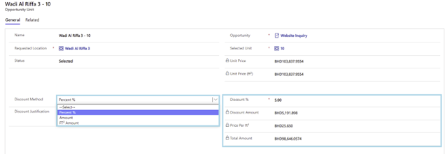 If customer required a discount, just what you want to do is to select the discount method then set “Discount % or Discount Amount or Price Per ft²” value based on your selection from Discount Method, then system will calculate the other fields values, then click on “Discount Request” button and approval activity will be send as email notification to required approvers.