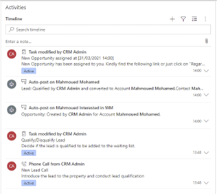 On the right-hand side, System User can see all the activities that the lead is going through, just to keep everything organized and not need to write everything down on a paper or something.