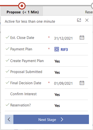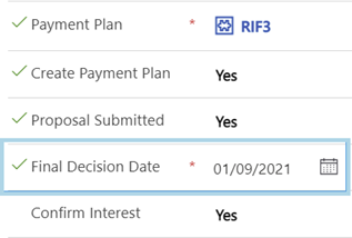 Once the Propose process is set, the estimated close date, final decision date, also the payment plan are required and finally whether the proposal is submitted or not.